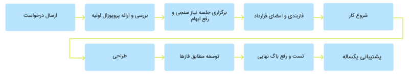 پس از این مراحل، اجرای کار شما آغاز میشود. ابتدا طراحیها انجام شده و برای شما ارسال میگردد. پس از انتخاب و تایید شما، فاز توسعه شروع میشود. تمامی مراحل اجرایی مطابق فازبندی پیش خواهد رفت. در پایان نیز تست و رفع باگ نهایی انجام میپذیرد. پس از تحویل نیز، پشتیبانی یکساله شما فعال میشود.